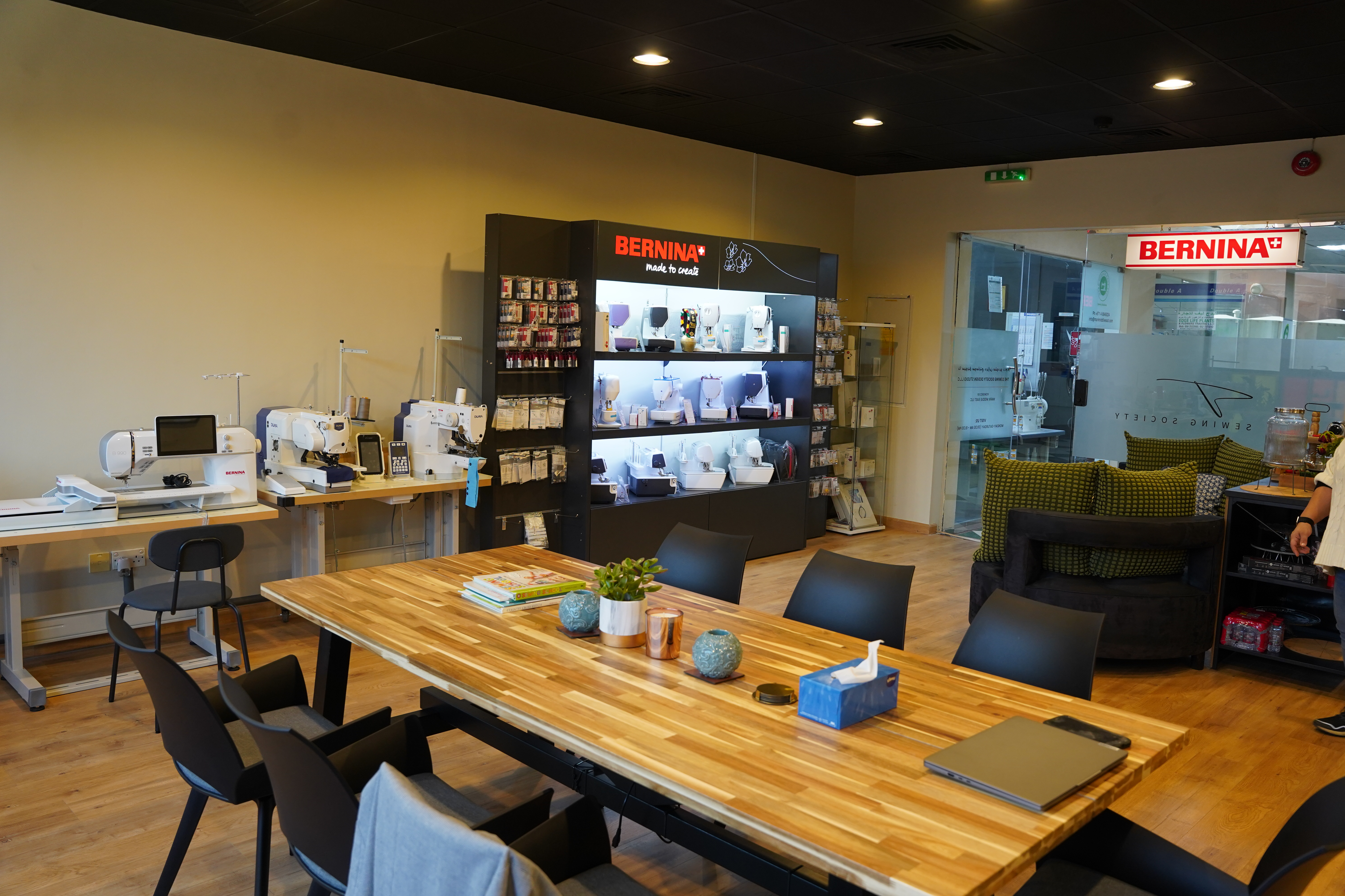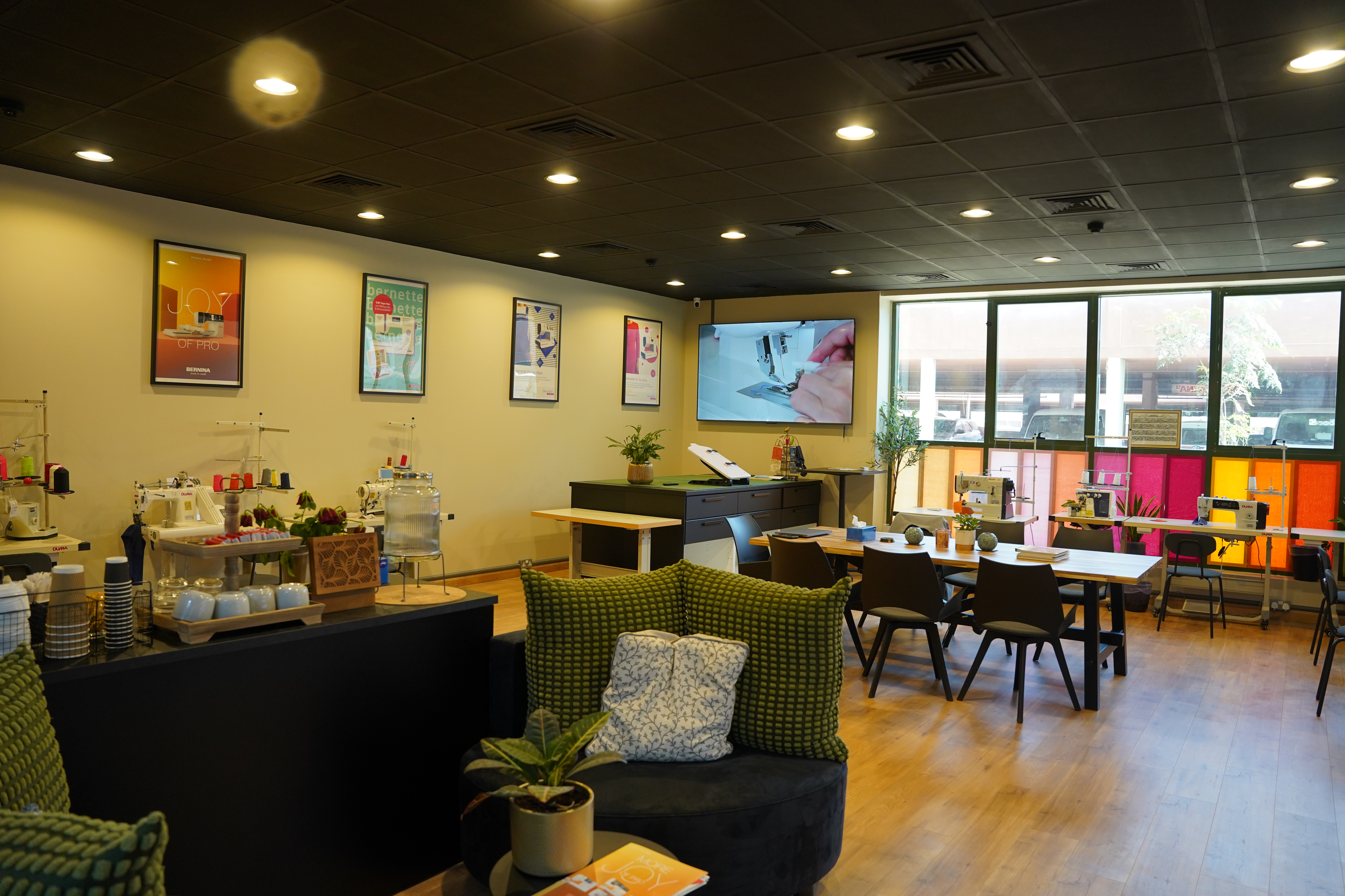 The Sewing Society Design Studio stands as the Regions inaugural multifunctional sewing ecosystem a sophisticated sanctuary blending professional equipment with serene, inspiring ambiance. Nestled in Dubai Investment Park, this elegant space features state-of-the-art industrial and domestic machines (including exclusive BERNINA and bernette models), spacious workstations, professional tools, and communal areas designed for focused creation and meaningful connections. Here, amidst natural light and thoughtful design, makers find respite from daily pace: a place where precision meets peace, and every project unfolds with purpose. Ideal for sewing machine rental in Dubai, skill-building sessions, or quiet craftsmanship.